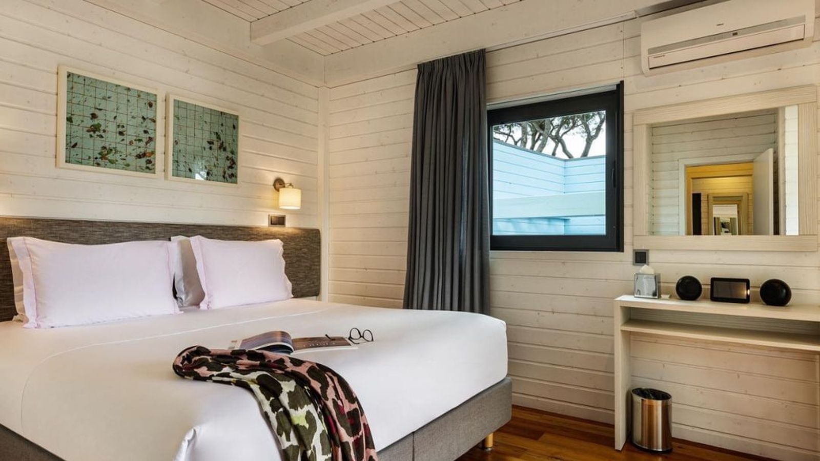 The simple rooms offer free Wi-Fi, plus flat screen TVs, mini fridges and furnished balconies. Suites add living rooms, as do wood bungalows with kitchenettes and terraces. Room service is offered and breakfast and parking are free. Other amenities include a restaurant and bar, along with an outdoor pool, poolside bar, tennis court and a gym. The spa features a hot tub, a sauna and a Turkish bath. Bike rentals are available.