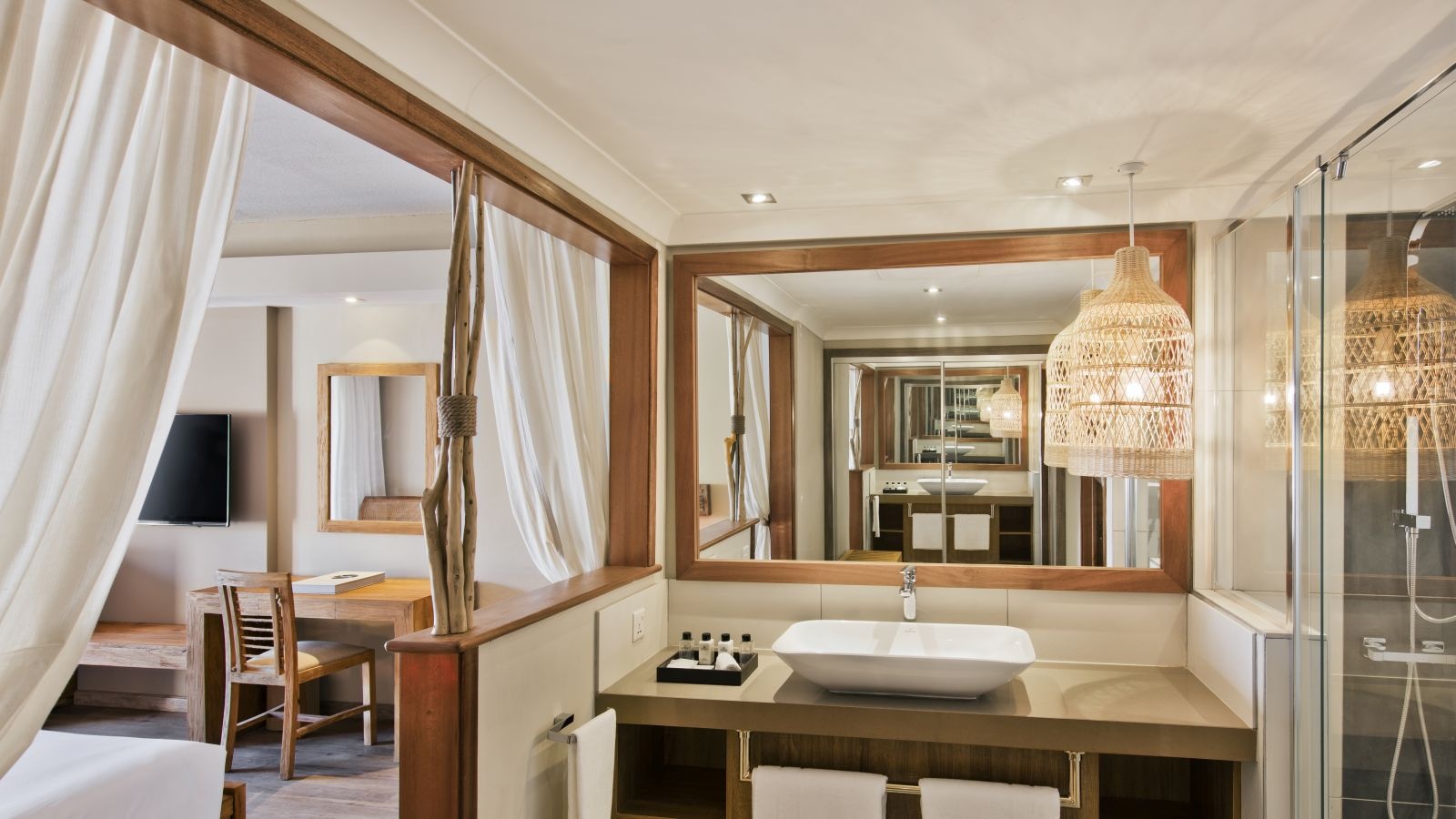 Laid back rooms have flat screen TVs, minibars and tea and coffee making facilities. Upgrade to include sea views and/or direct beach access.