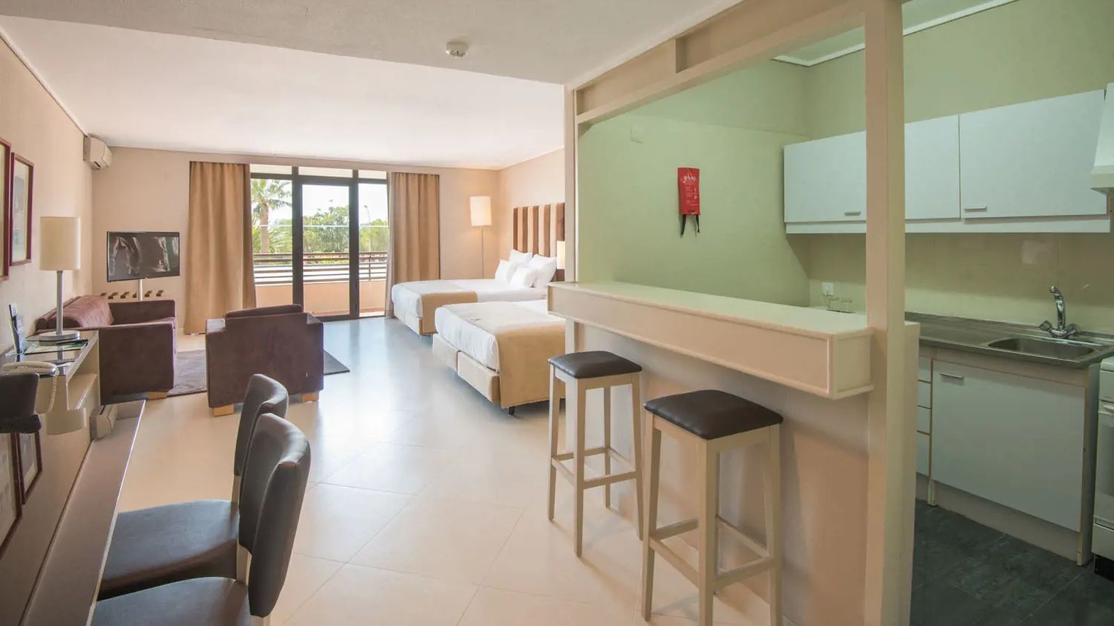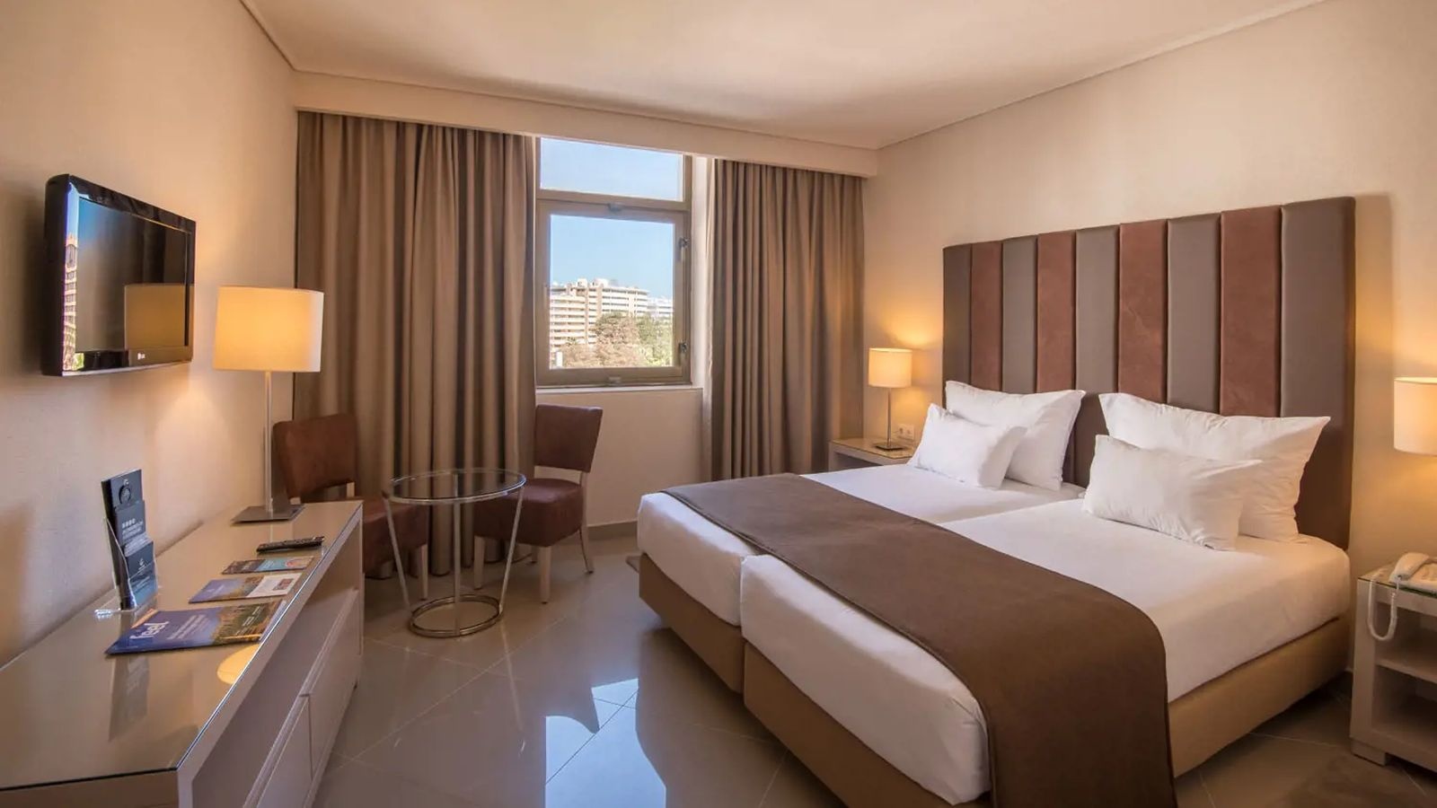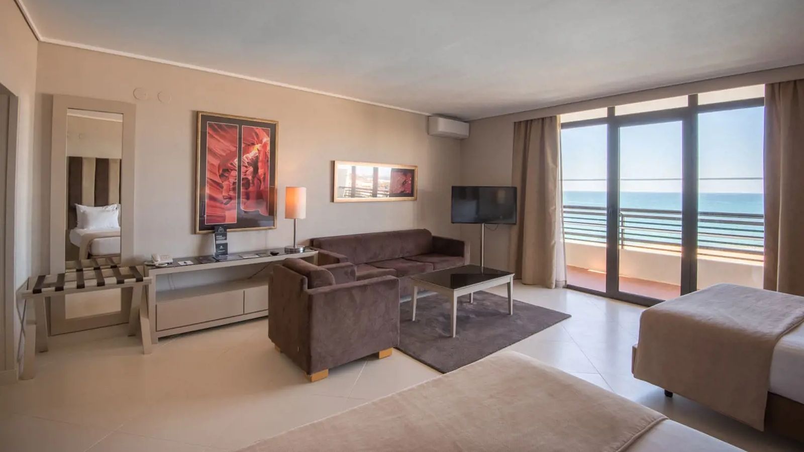This upscale hotel has 357 rooms which are all air conditioned and offer free Wi-Fi, flat screen TVs, minibars, plus tea and coffee makers (for a fee). Sea view rooms are available for a small supplement and have a balcony, seating areas and/or sofa beds. Suites add living rooms. Room service is available.