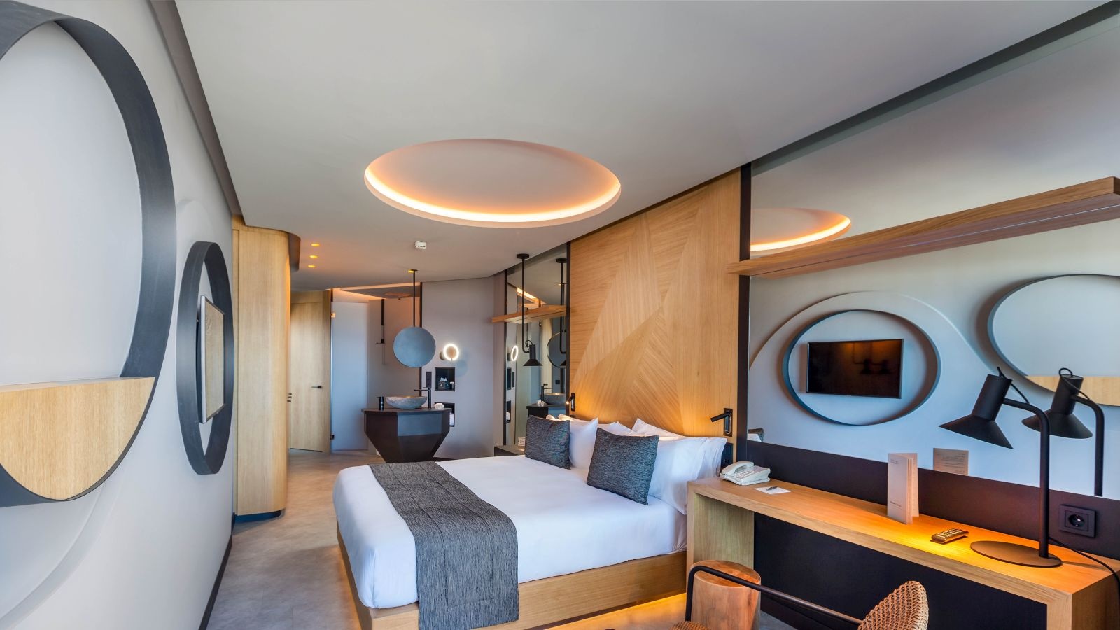 Other amenities include an upscale restaurant, a buffet eatery and a poolside bar, as well as a cocktail bar and rooftop lounge. Guests can also take advantage of the gym, outdoor pool and hot tub. Parking is available for a fee.